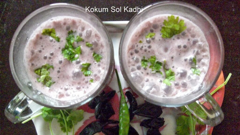 Solkadhi is a traditional drink made from kokum, a fruit commonly found in the coastal regions of India. Kokum is known for its tangy, slightly sour taste, and when combined with coconut milk, it forms a creamy, cooling beverage. It’s often served as a side dish with rice and curry to balance out the heat or as a digestive aid after meals.