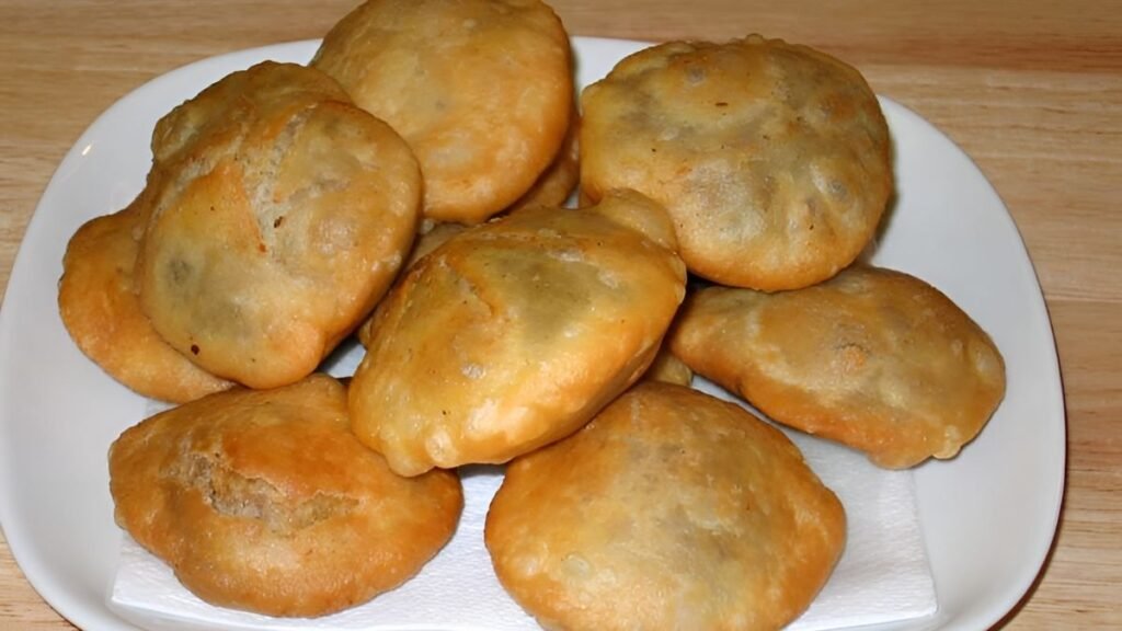 The dough is kneaded until soft and rested for about 30 minutes. This resting helps develop the texture for flakiness when fried.